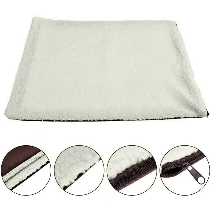 Håll ditt husdjur varmt utan el. Den självvärmande mattan reflekterar husdjurets egen kroppsvärme för skonsam värme. Mjuk coralfleece med lammullsfoder, halkfri botten och avtagbart, maskintvättbart överdrag — perfekt för katter, hundar och smådjur både inne och ute.